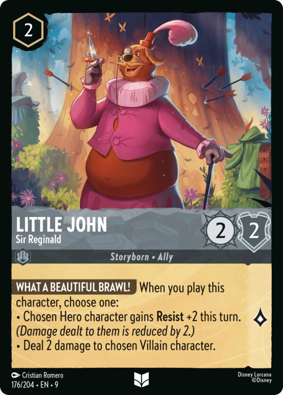 When you play this character, choose one: • Chosen Hero character gains Resist +2 this turn. (Damage dealt to them is reduced by 2.) • Deal 2 damage to chosen Villain character.
