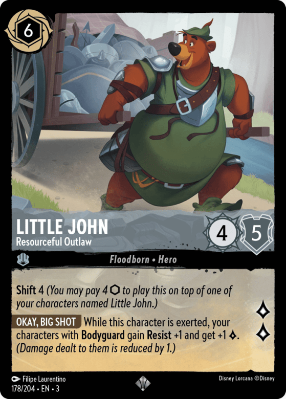 While this character is exerted, your characters with Bodyguard gain Resist +1 and get +1 {Lore}. (Damage dealt to them is reduced by 1.)