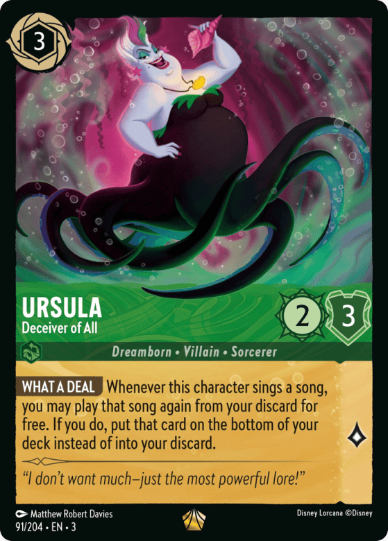 Whenever this character sings a song, you may play that song again from your discard for free. If you do, put that card on the bottom of your deck instead of into your discard.