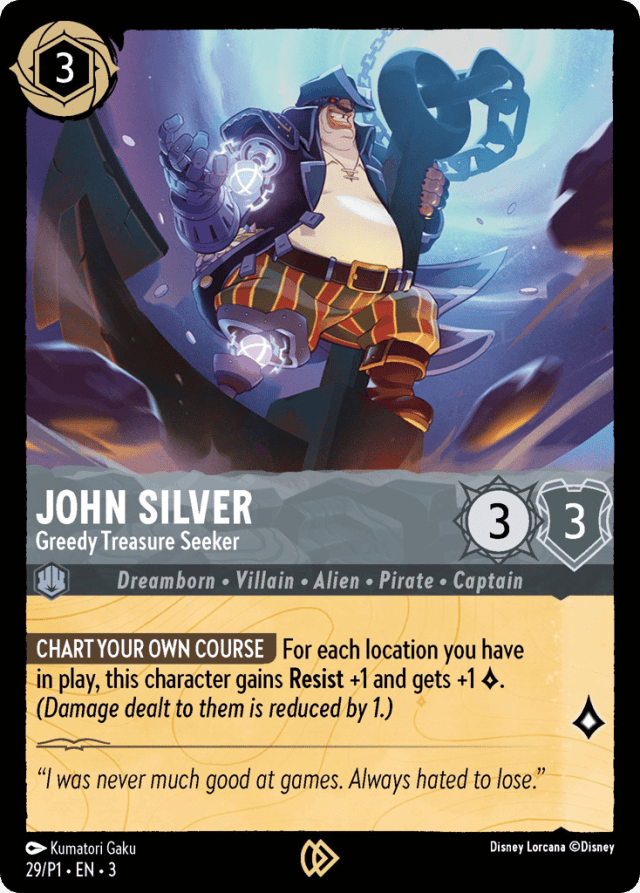 For each location you have in play, this character gains Resist +1 and gets +1 {Lore}. (Damage dealt to them is reduced by 1.)