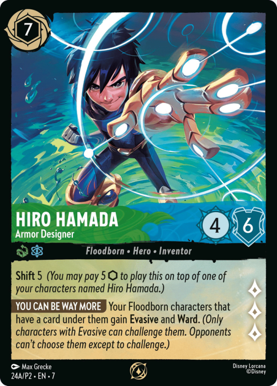 Your Floodborn characters that have a card under them gain Evasive and Ward. (Only characters with Evasive can challenge them. Opponents can't choose them except to challenge.)