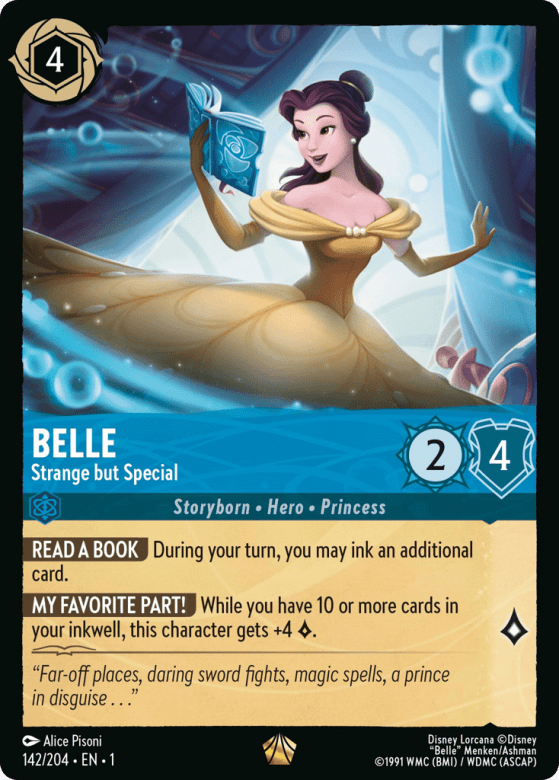 While you have 10 or more cards in your inkwell, this character gets +4 {Lore}.