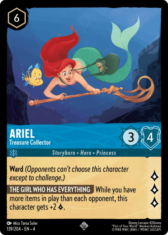 While you have more items in play than each opponent, this character gets +2 {Lore}.