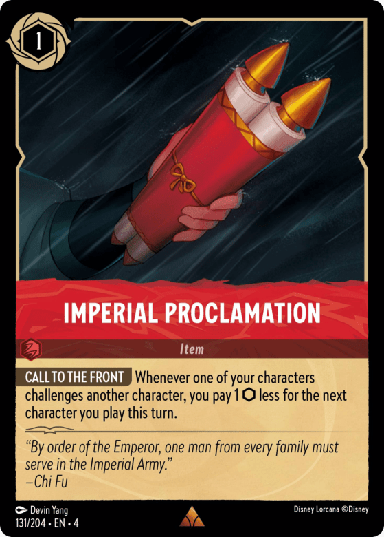 Whenever one of your characters challenges another character, you pay 1 {Ink} less for the next character you play this turn.