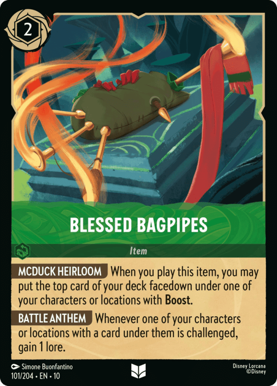 When you play this item, you may put the top card of your deck facedown under one of your characters or locations with Boost.
