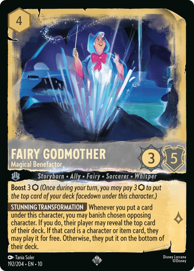 Whenever you put a card under this character, you may banish chosen opposing character. If you do, their player may reveal the top card of their deck. If that card is a character or item card, they may play it for free. Otherwise, they put it on the bottom of their deck.