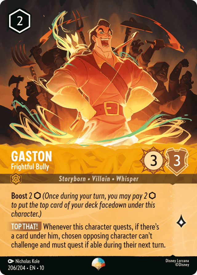Whenever this character quests, if there's a card under him, chosen opposing character can't challenge and must quest if able during their next turn.