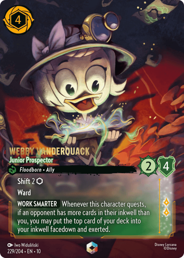 Whenever this character quests, if an opponent has more cards in their inkwell than you, you may put the top card of your deck into your inkwell facedown and exerted.