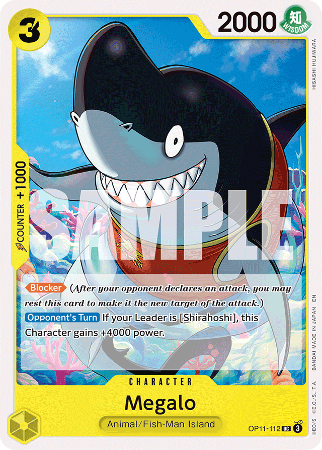 [Blocker] (After your opponent declares an attack, you may rest this card to make it the new target of the attack.) [Opponent's Turn] If your Leader is [Shirahoshi], this Character gains +4000 power.