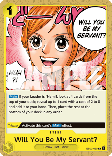 [Your Turn] [On Play] DON!! −1: If your Leader is [Sanji], activate the [Main] effect of up to 1 Event card with a cost of 7 or less in your trash.