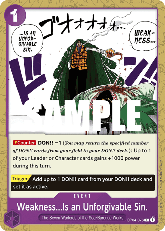 [Counter] DON!! −1 (You may return the specified number of DON!! cards from your field to your DON!! deck.): Up to 1 of your Leader or Character cards gains +1000 power during this turn. [Trigger] Add up to 1 DON!! card from your DON!! deck and set it as active.