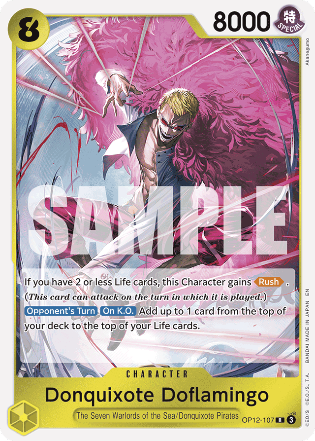 If you have 2 or less Life cards, this Character gains [Rush].(This card can attack on the turn in which it is played.) [Opponent's Turn] [On K.O.] Add up to 1 card from the top of your deck to the top of your Life cards.