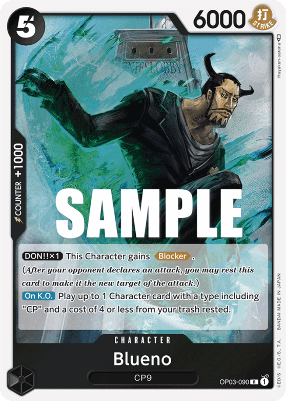 [DON!! x1] This Character gains [Blocker].(After your opponent declares an attack, you may rest this card to make it the new target of the attack.) [On K.O.] Play up to 1 Character card with a type including "CP" and a cost of 4 or less from your trash rested.