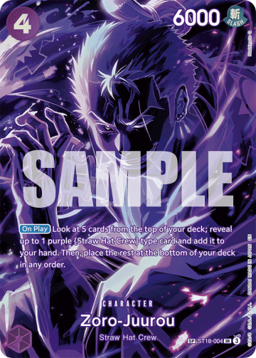 [On Play] Look at 5 cards from the top of your deck; reveal up to 1 purple {Straw Hat Crew} type card and add it to your hand. Then, place the rest at the bottom of your deck in any order.