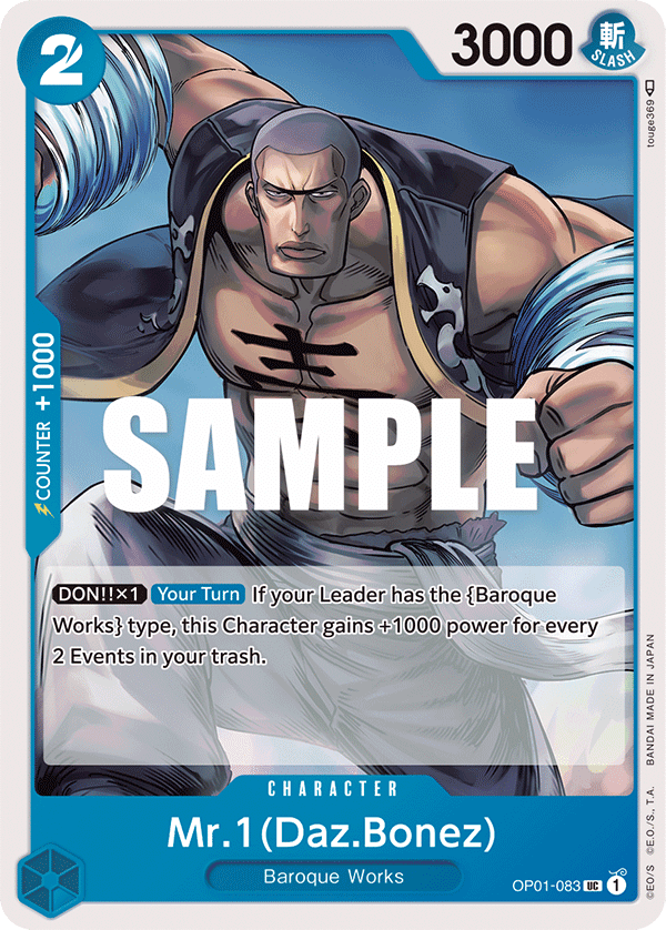[DON!! x1] [Your Turn] If your Leader has the {Baroque Works} type, this Character gains +1000 power for every 2 Events in your trash.