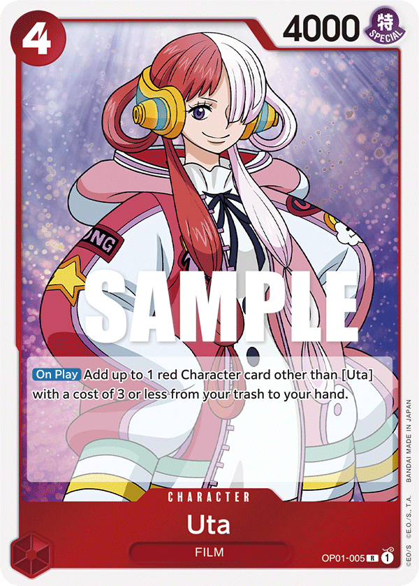 [On Play] Add up to 1 red Character card other than [Uta] with a cost of 3 or less from your trash to your hand.