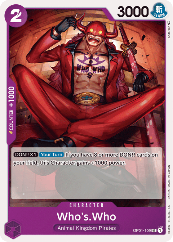 [DON!! x1] [Your Turn] If you have 8 or more DON!! cards on your field, this Character gains +1000 power.
