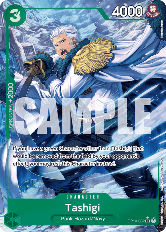 If you have a green Character other than [Tashigi] that would be removed from the field by your opponent's effect, you may rest this Character instead.