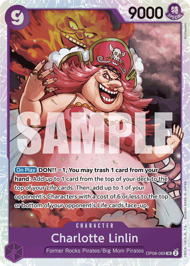 [On Play] DON!! −1, You may trash 1 card from your hand: Add up to 1 card from the top of your deck to the top of your Life cards. Then, add up to 1 of your opponent's Characters with a cost of 6 or less to the top or bottom of your opponent's Life cards face-up.
