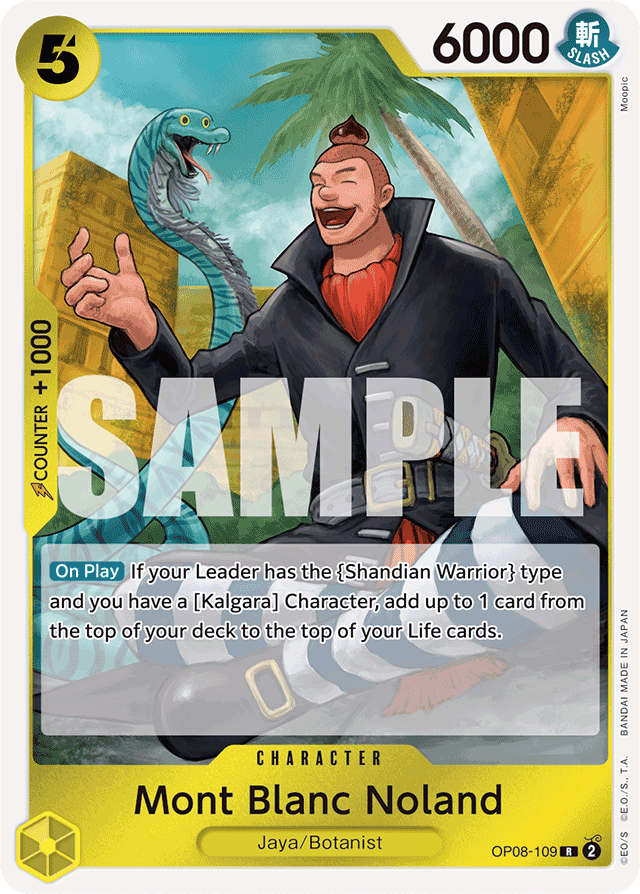 [On Play] If your Leader has the {Shandian Warrior} type and you have a [Kalgara] Character, add up to 1 card from the top of your deck to the top of your Life cards.