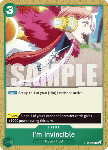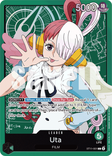 [Main] If your Leader is [Uta], choose one:• Rest up to 1 of your opponent's Characters with a cost of 5 or less.• K.O. up to 1 of your opponent's rested Characters with a cost of 5 or less.
