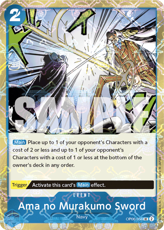 [Main] Place up to 1 of your opponent's Characters with a cost of 2 or less and up to 1 of your opponent's Characters with a cost of 1 or less at the bottom of the owner's deck in any order. [Trigger] Activate this card's [Main] effect.