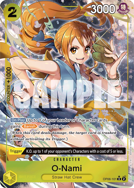 [On Play] Up to 1 of your Leader or Character cards gains [Banish] during this turn.(When this card deals damage, the target card is trashed without activating its Trigger.) [Trigger] K.O. up to 1 of your opponent's Characters with a cost of 5 or less.