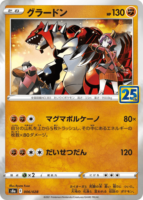 カイオーガと 死闘の末 長い 眠りに ついた。大地の 化身と 言われる 伝説の ポケモン。