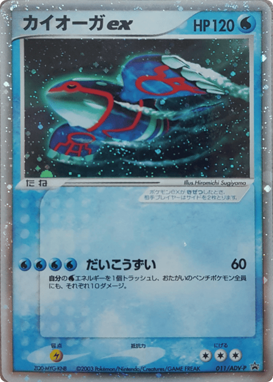 Discard a Water Energy card attached to Kyogre ex. Does 10 damage to each Benched Pokémon (both yours and your opponent's). (Don't apply Weakness and Resistance for Benched Pokémon.)