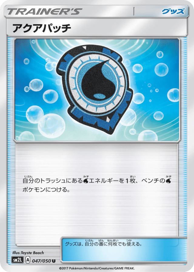 自分のトラッシュにあるWaterポケモンにつける。 グッズは、自分の番に何枚でも使える。
