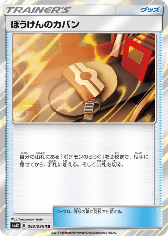 自分の山札にある「ポケモンのどうぐ」を2枚まで、相手に見せてから、手札に加える。そして山札を切る。 グッズは、自分の番に何枚でも使える。