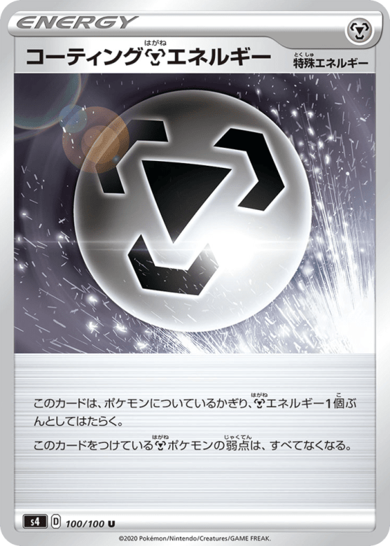 このカードは、ポケモンについているかぎり、Metalエネルギー1個ぶんとしてはたらく。 このカードをつけているMetalポケモンの弱点は、すべてなくなる。