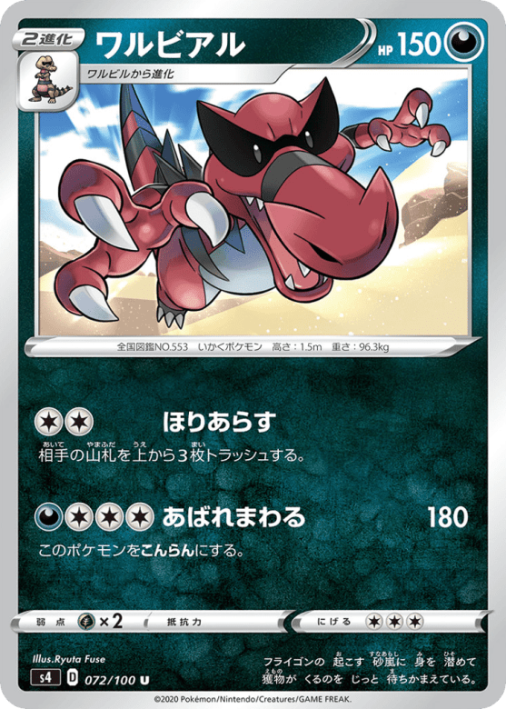 フライゴンの 起こす 砂嵐に 身を 潜めて 獲物が くるのを じっと 待ちかまえている。