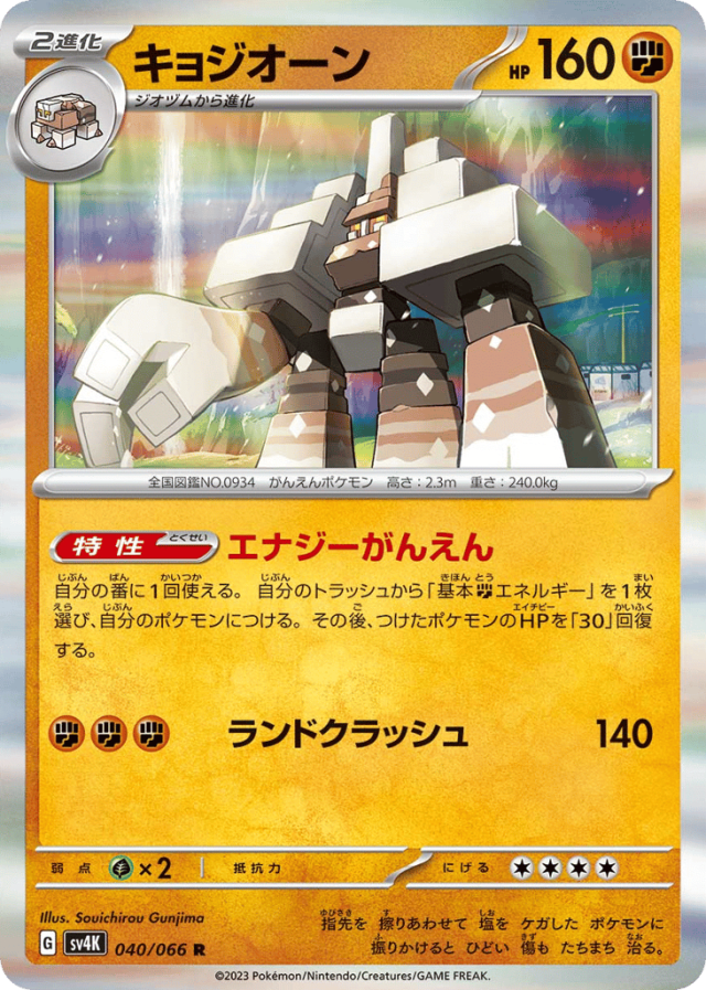 自分の番に1回使える。自分のトラッシュから「基本Fightingエネルギー」を1枚選び、自分のポケモンにつける。その後、つけたポケモンのHPを「30」回復する。