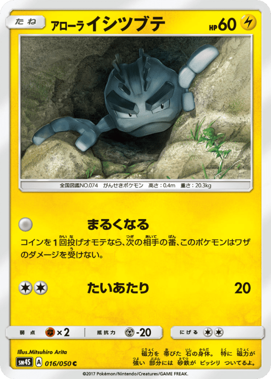 磁力を 帯びた 石の身体。 特に 磁力が 強い 部分には 砂鉄が ビッシリ ついてるよ。