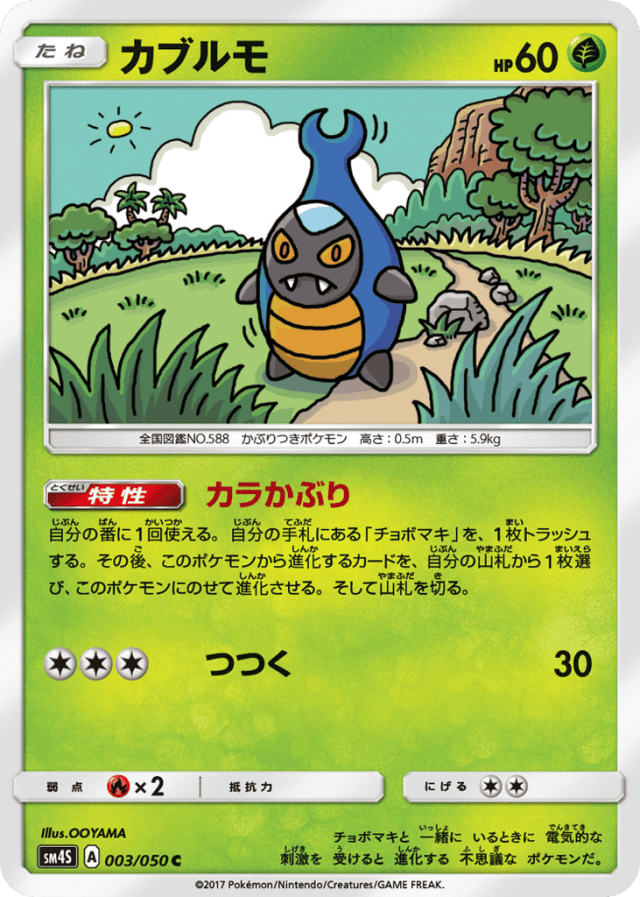 自分の番に1回使える。自分の手札にある「チョボマキ」を、1枚トラッシュする。その後、このポケモンから進化するカードを、自分の山札から1枚選び、このポケモンにのせて進化させる。そして山札を切る。