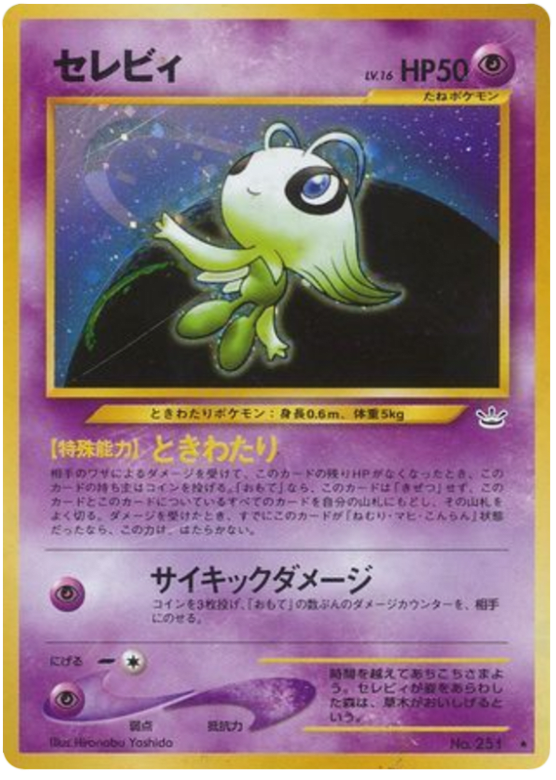 If an opponent's attack would Knock Out Celebi, flip a coin. If heads, Celebi isn't Knocked Out and you shuffle it and all cards attached to it into your deck. This power doesn't work if Celebi is already Asleep, Confused, or Paralyzed.