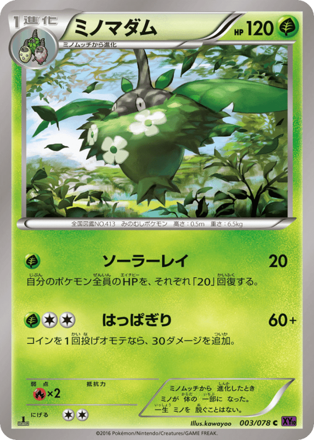ミノムッチから 進化したとき ミノが 体の 一部に なった。 一生 ミノを 脱ぐことはない。