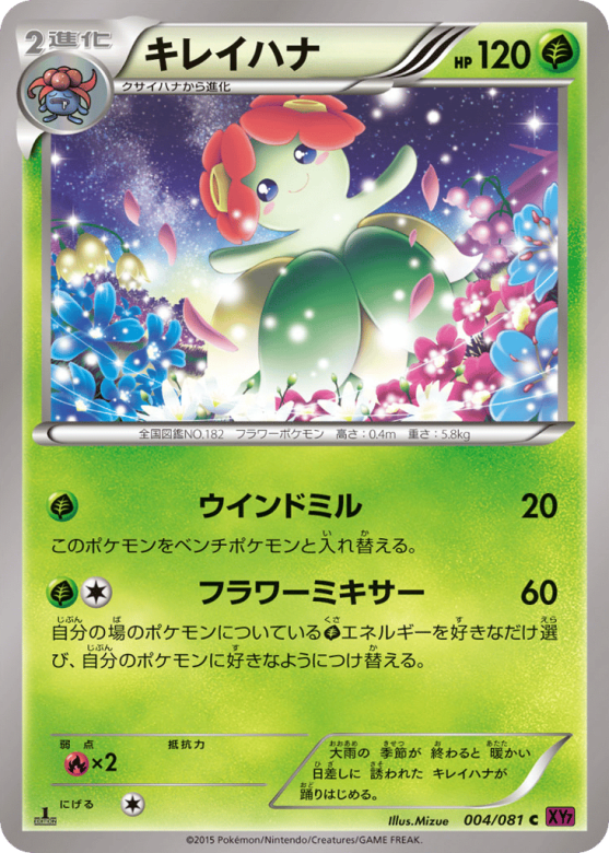 自分の場のポケモンについているGrassエネルギーを好きなだけ選び、自分のポケモンに好きなようにつけ替える。