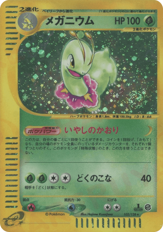 Once during your turn (before your attack), you may flip a coin. If heads, remove 1 damage counter from each of your Pokémon that has any. This power can't be used if Meganium is affected by a Special Condition.