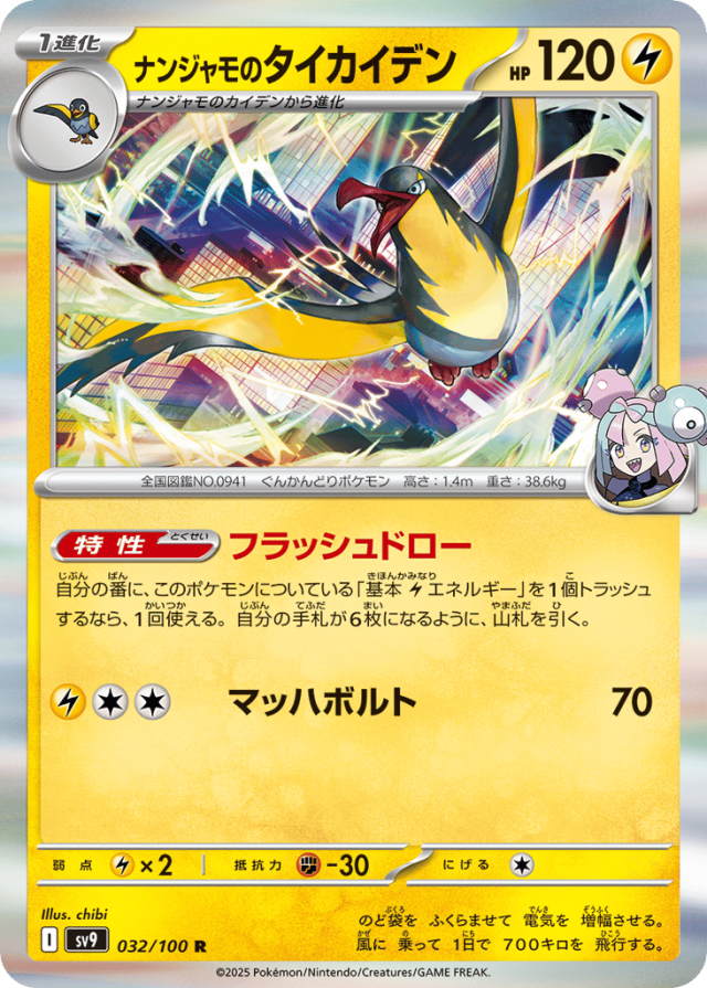 自分の番に、このポケモンについている「基本Lightningエネルギー」を1個トラッシュするなら、1回使える。自分の手札が6枚になるように、山札を引く。