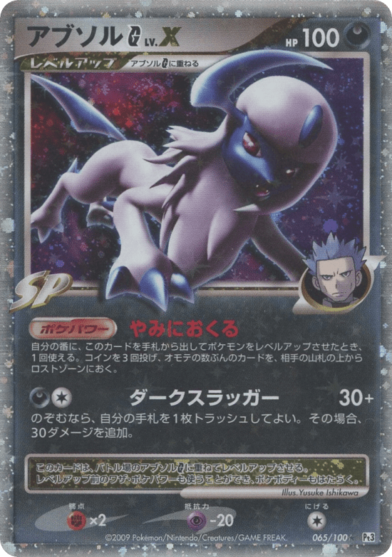 Once during your turn (before your attack), when you put Absol G LV.X from your hand onto your Active Absol G, you may flip 3 coins. For each heads, put the top card from your opponent's deck in the Lost Zone.