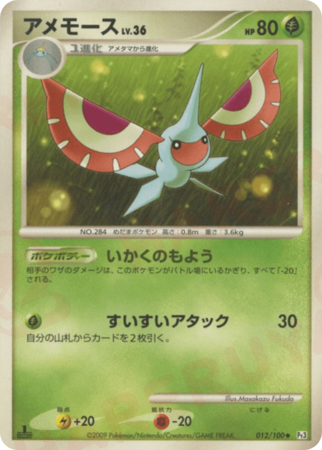 As long as Masquerain is your Active Pokémon, any damage done by an opponent's attack is reduced by 20 (before applying Weakness and Resistance).