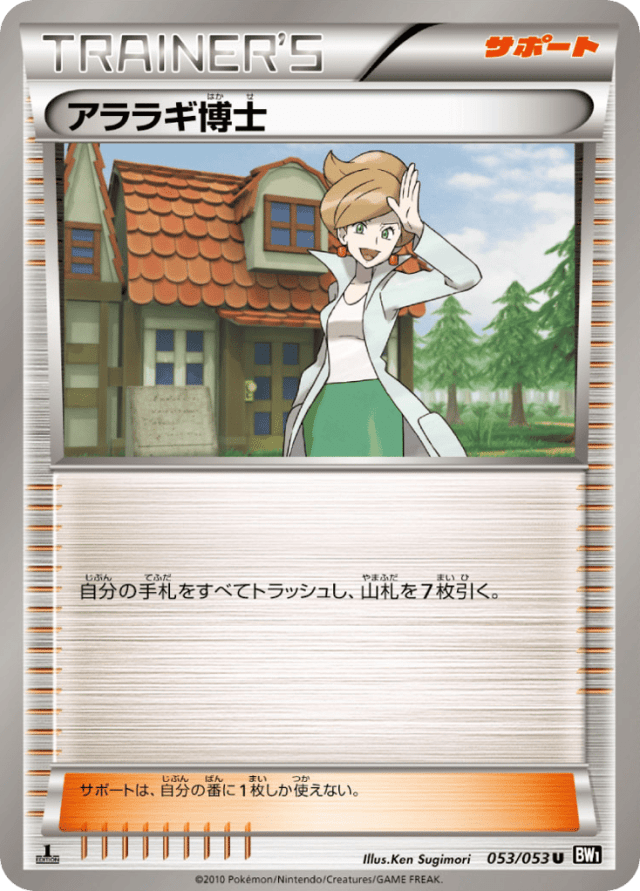 自分の手札をすべてトラッシュし、山札を7枚引く。 サポートは、自分の番に1枚しか使えない。