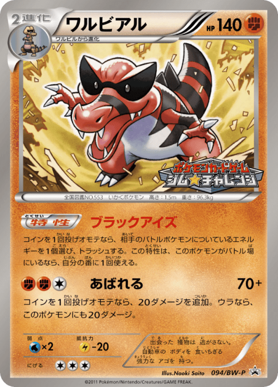 コインを1回投げオモテなら、相手のバトルポケモンについているエネルギーを1個選び、トラッシュする。この特性は、このポケモンがバトル場にいるなら、自分の番に1回使える。
