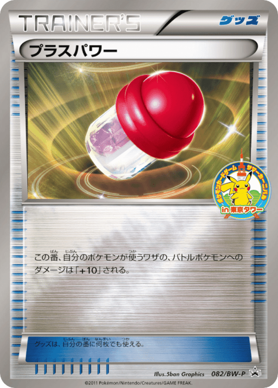 この番、自分のポケモンが使うワザの、バトルポケモンへのダメージは「+10」される。 グッズは、自分の番に何枚でも使える。