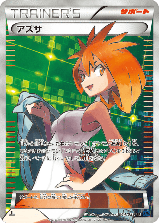 自分の山札から、たねポケモンの「ポケモンEX」を1枚、またはたねポケモン(「ポケモンEX」をのぞく)を3枚まで選び、ベンチに出す。そして山札を切る。 サポートは、自分の番に1枚しか使えない。