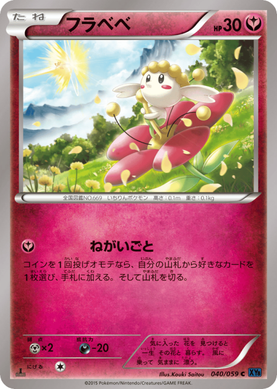 コインを1回投げオモテなら、自分の山札から好きなカードを1枚選び、手札に加える。そして山札を切る。