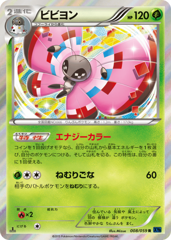住んでいる 気候や 風土によって 羽の 模様が 違う ポケモン。 色鮮やかな りんぷんを まく。