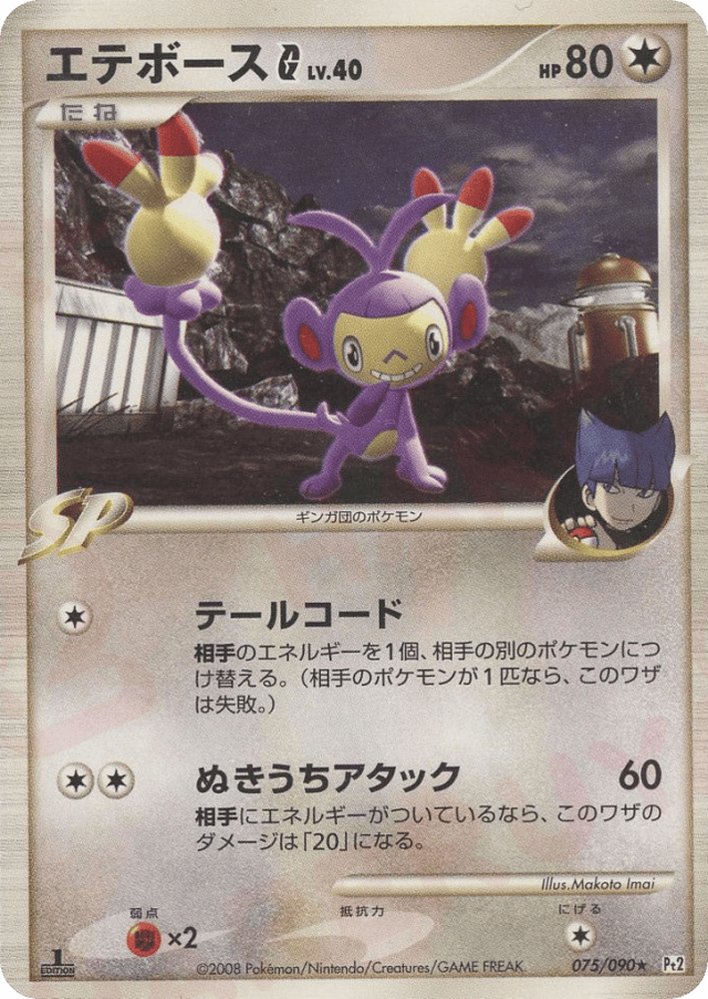 相手のエネルギーを1個、相手の別のポケモンにつけ替える。(相手のポケモンが1匹なら、このワザは失敗。)